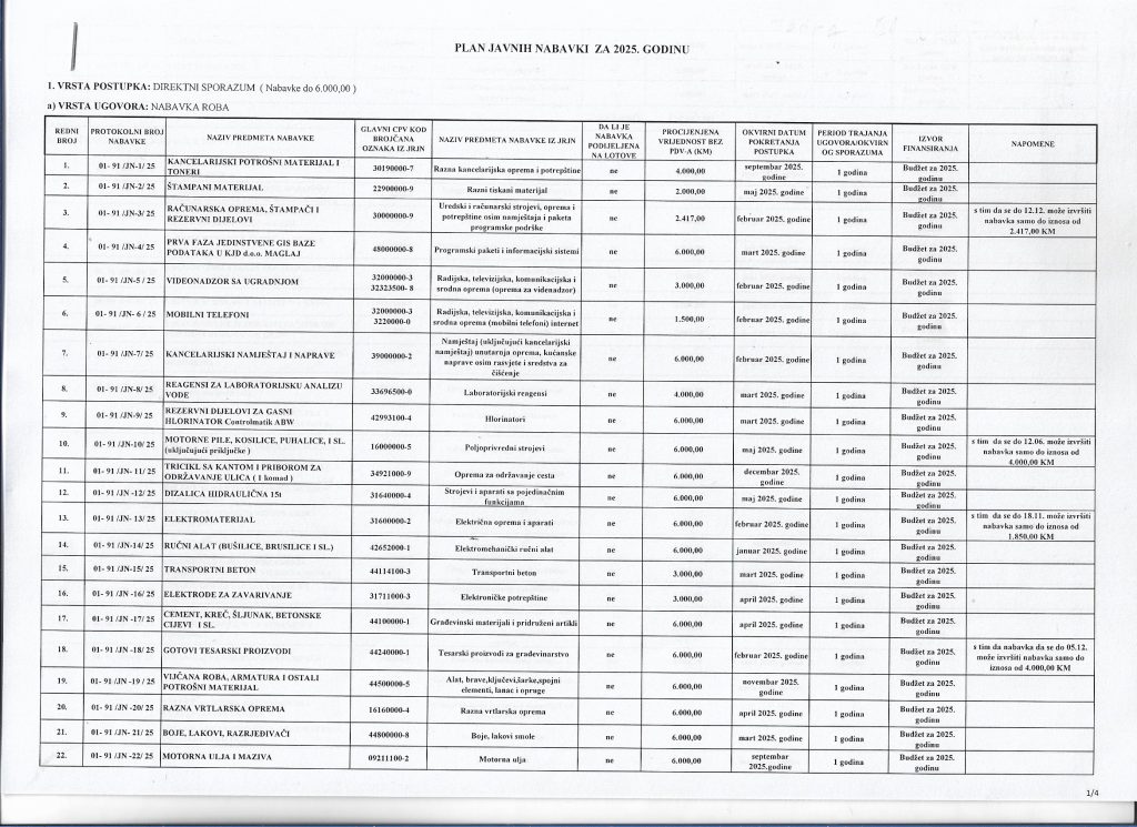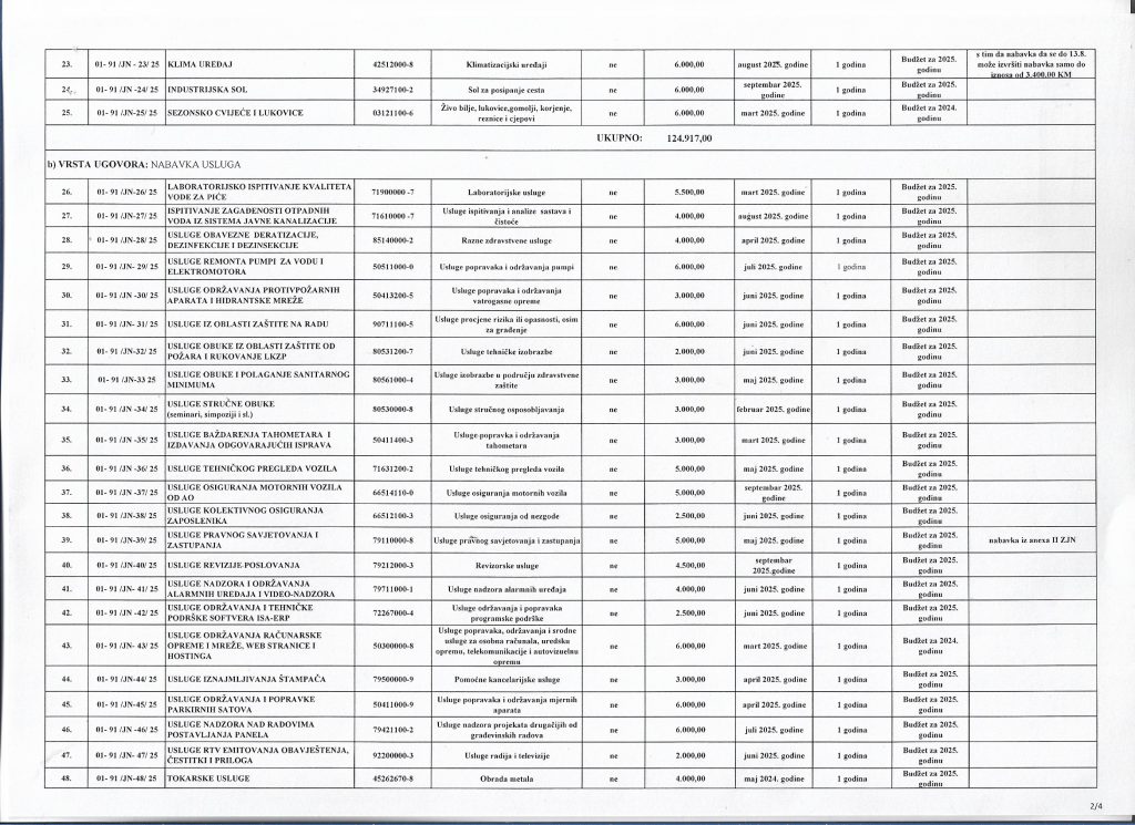 PLAN JAVNIH NABAVKI ZA 2025. GODINU