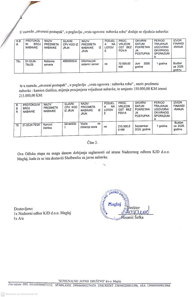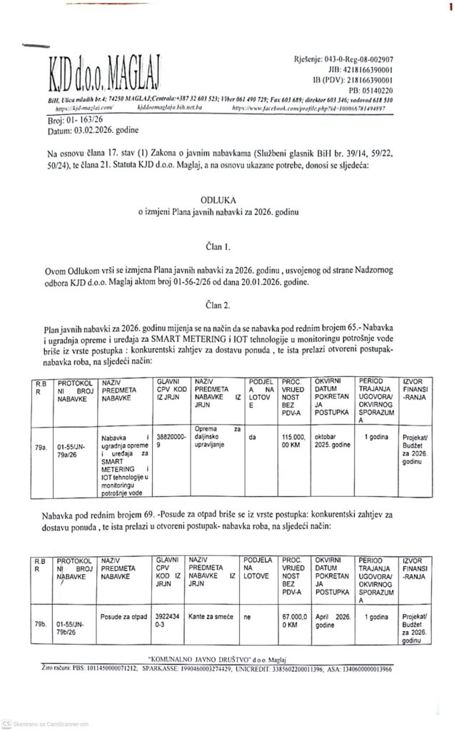 ODLUKA O IZMJENI PLANA JAVNIH NABAVKI